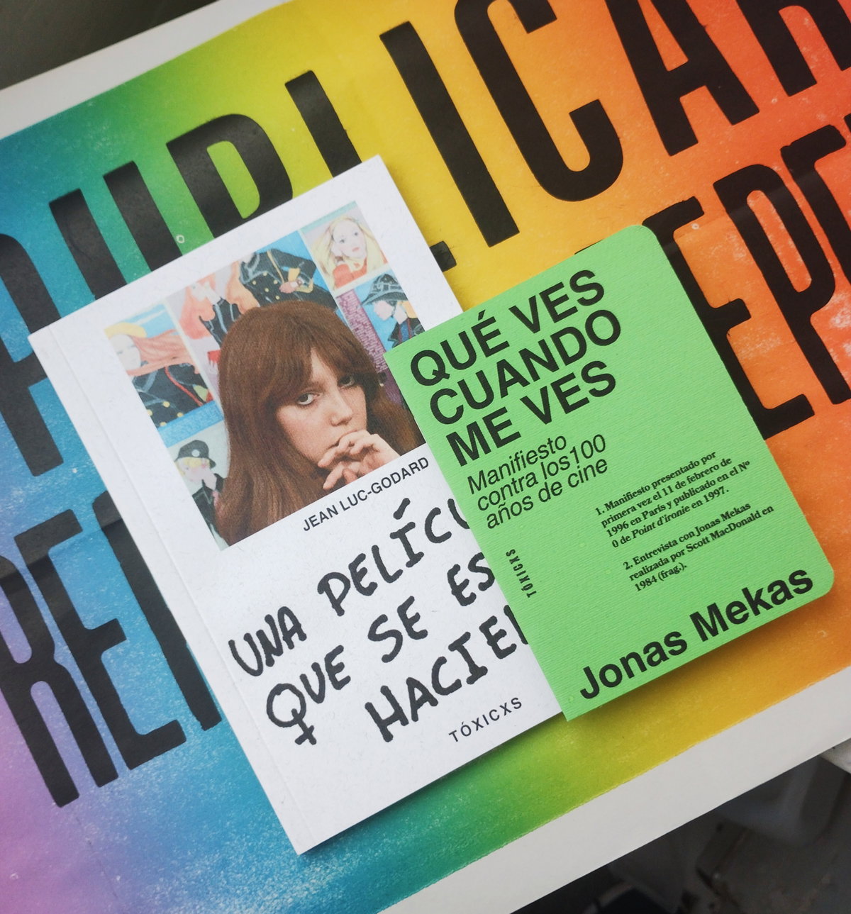 Una película que se está haciendo de Jean-Luc Godard (5ta ed, 2026). 100 pág. Incluye textos de Jean-Luc Godard, Dan Isaac, Elvio Gondolfo, Pedro de Rey y Flabia de la Fuente. Prólogo de Alfredo A. Díaz.